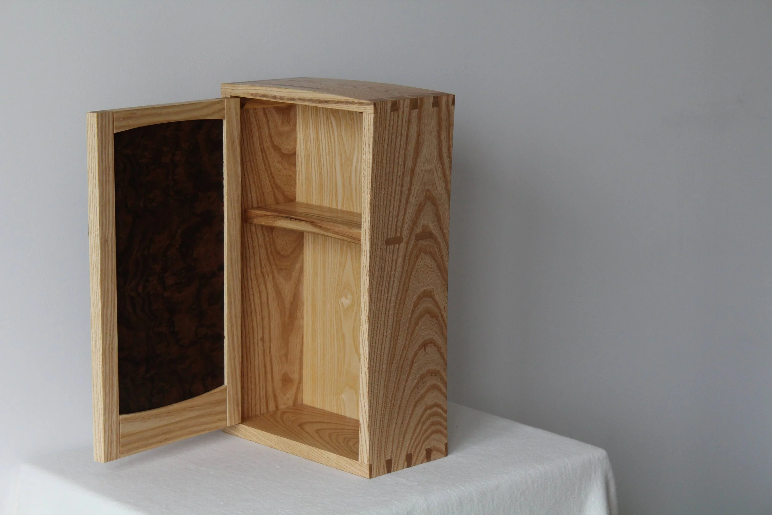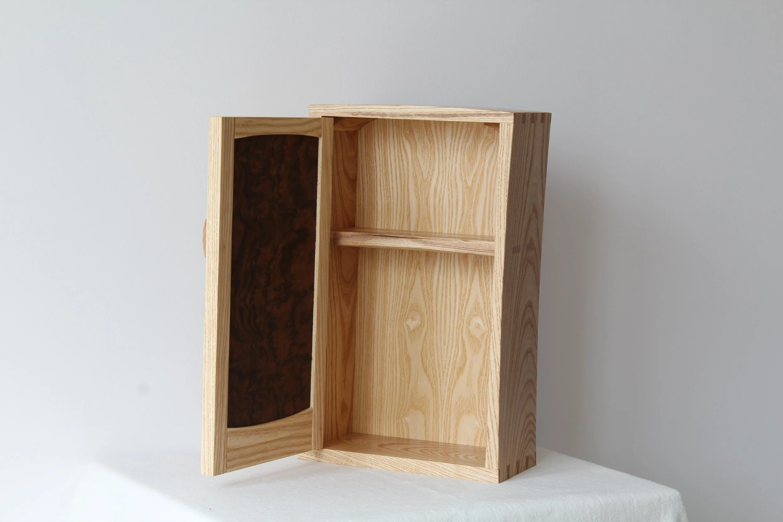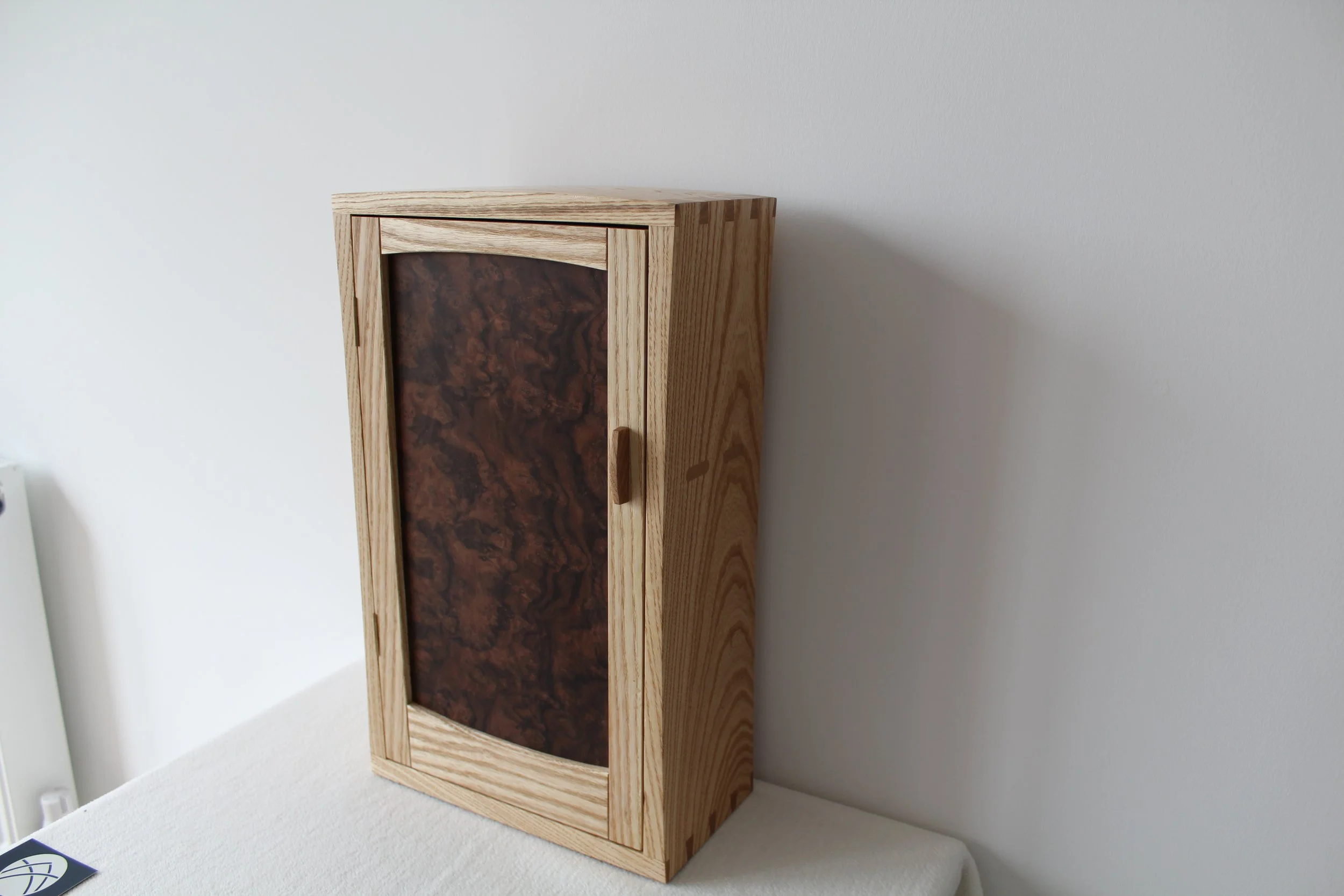 Local ash body and burr walnut veneered door panel